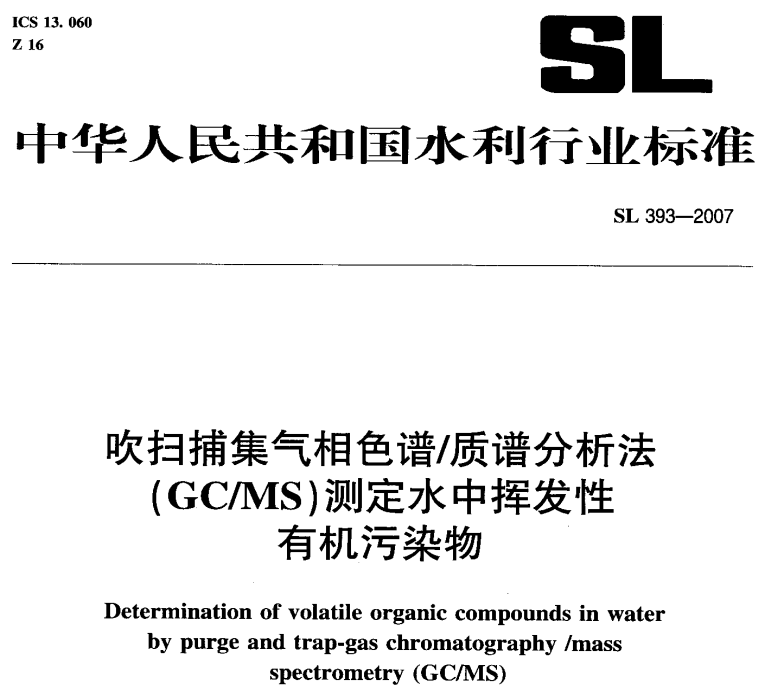 SL 393-2007 吹掃捕集氣相色譜-質(zhì)譜分析法(GC-MS)測定水中揮發(fā)性有機(jī)污染物 SL 393-2007 吹掃捕集氣相色譜-質(zhì)譜分析法(GC-MS)測定水中揮發(fā)性有機(jī)污染物本標(biāo)準(zhǔn)適用... 更新日期:2020-05-06 下載包(1)
