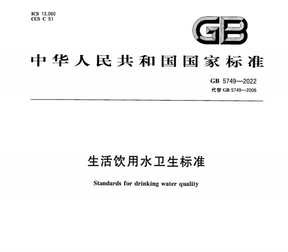 《生活飲用水衛(wèi)生標(biāo)準(zhǔn)》GB 5749-2022已批準(zhǔn),將于2023年4月1日正式實(shí)施 國家市場監(jiān)督管理總局(國家標(biāo)準(zhǔn)化管理委員會(huì))?關(guān)于批準(zhǔn)發(fā)布《生活飲用水衛(wèi)生標(biāo)準(zhǔn)》等5項(xiàng)強(qiáng)制性國家標(biāo)準(zhǔn)... 更新日期:2022-04-04 下載包(1)