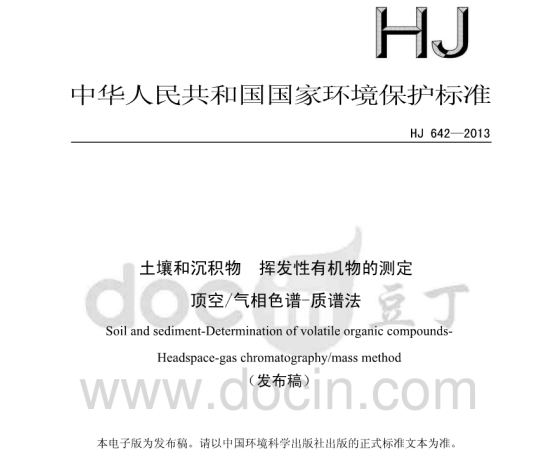 HJ642-2013土壤和沉積物揮發(fā)性有機物的測定頂空氣相色譜—質譜法 適用范圍試驗中所使用的內標、替代物和標準溶液為易揮發(fā)的有毒化合物,其溶液配制過程應在通風廚中進行操作... 更新日期:2020-05-09 下載包(1)